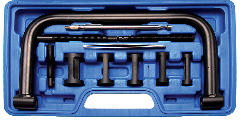 • per motori e motocicli di piccole dimensioni • 5 pressori intercambiabili da: 16 - 19 - 23 - 25 - 30 mm • morsetto a C da 100 mm • con asta telescopica magnetica • con pinzette • peso 1,5 kg |