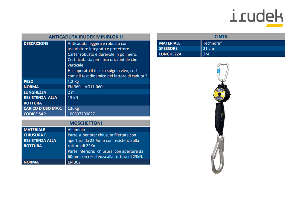 Cordino con recupero automatico IRUDEK MINIBLOK H 2mt.