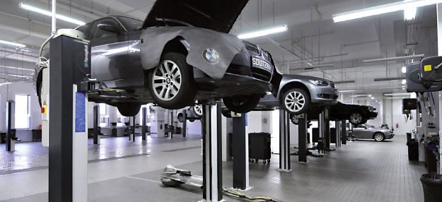 Bracci corti a tre stadi per il sollevamento asimmetrico agevole anche di veicoli larghi. Altezza minima tamponi di soli 95 mm.