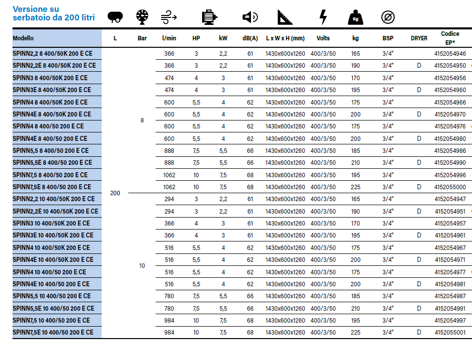 Compressore Abac a vite SPINN su serbatoio da 200lt.