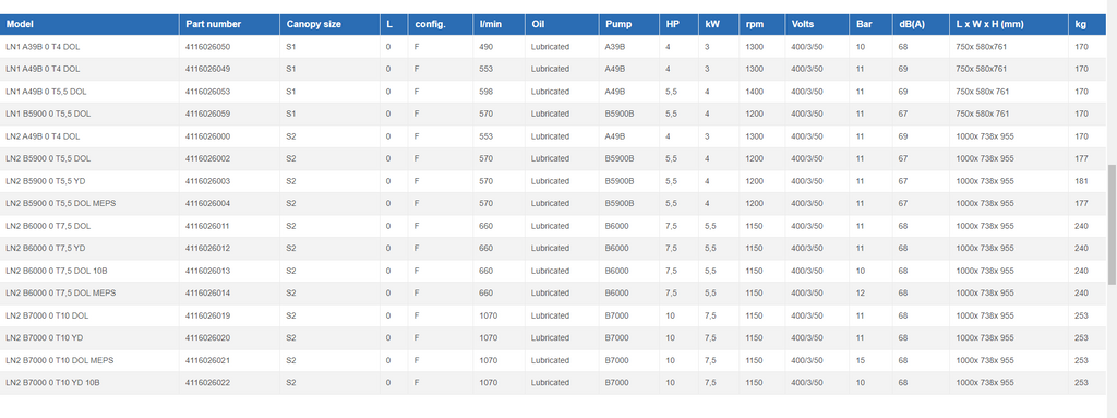 | LN2 B6000 0 T7,5 DOL MEPS | 4116026014 | S2 | 0 | F | 660 | Lubricated | B6000 | 7,5 | 5,5 | 1150 | 400/3/50 | 12 | 68 | 1000x 738x 955 | 240 | ||||||||||||||||