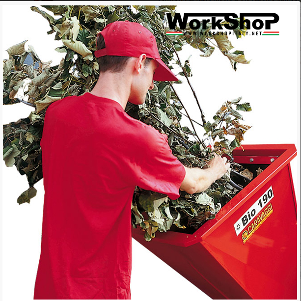 Il biotrituratore tipo BIO 190 , macchina di NUOVA GENERAZIONE, è la sintesi dei diversi sistemi di triturazione dei rifiuti organici e vegetali, utilizzando una sola bocca di alimentazione, passando attraverso il doppio sistema di cippatura e triturazione con raffinazione della griglia e successiva ventilazione ad una quota di cm 200 da terra. La macchina è disponibile nella versione con motore o a presa di forza del trattore. Il Biotrituratore tipo BIO 190 è accessoriato con motore a benzina o elettrico da 380 Volt. Il sistema di macinazione è costituito da 2 parti: la prima chiamata Cippatore, serve per tagliare prodotti legnosi o fibrosi come il legno, tiglio, salice, etc; la seconda, mediante martelletti mobili, tritura prodotti come fogliame, siepi, terriccio, scarti di cucina e garantisce il buon funzionamento anche se casualmente venissero introdotti sassi o chiodi. La finezza del macinato e del composto si può regolare mediante un crivello. La naturale trasformazione del triturato Biologico crea una sostanza ricca di valori proteici da riutilizzare come concime.