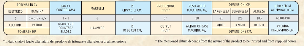 Il biotrituratore modello BIO 55 è disponibile nella versione con motore a benzina ed elettrico. Il sistema di macinazione è costituito da una lama sfaldatrice che opera una prima grossolana riduzione del materiale introdotto e da martelli mobili che effettuano la triturazione finale. Il nuovo sistema di trasmissione a cinghia garantisce un utilizzo sicuro in caso di introduzione di materiale anche non idoneo. La finezza del macinato e del composto è regolata dal crivello; il prodotto triturato viene infine scaricato in un sacco di raccolta. La naturale trasformazione del triturato Biologico crea una sostanza ricca di valori proteici da riutilizzare come concime.
