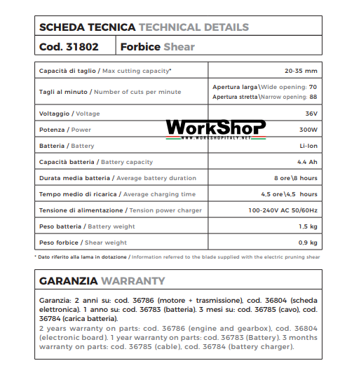 {"id":1397225979959,"title":"Forbice elettrica Electra Ausonia per potatura","handle":"forbice-elettrica-electra-ausonia-per-potatura","description":"\u003cp\u003eForbice elettrica Electra Ausonia per potatura\u003c\/p\u003e\n\u003cp\u003e\u003cimg src=\"\/\/cdn.shopify.com\/s\/files\/1\/0325\/3433\/files\/Cattura_1b6dcece-6ae5-4055-b36b-38582dd1dbcc_large.PNG?v=1536942359\" alt=\"\"\u003e\u003c\/p\u003e\n\u003cdiv id=\"dlg_zoom_title\"\u003eForbici elettriche da potatura Ausonia - Electra, batteria Li-ion da 4 Ah. Ø max 28mm\u003c\/div\u003e\n\u003cdiv\u003e\u003c\/div\u003e\n\u003cdiv\u003e\u003cimg src=\"\/\/cdn.shopify.com\/s\/files\/1\/0325\/3433\/files\/Cattura_e7f7fa00-e8a4-4973-babd-0c5a56a58de4_large.PNG?v=1536942280\" alt=\"\"\u003e\u003c\/div\u003e\n\u003cdiv\u003e\u003c\/div\u003e\n\u003cdiv\u003e\n\u003ch2 itemprop=\"description\"\u003eCon fondina e batteria agli ioni di litio, spalleggiata. Scocca in alluminio - 2 aperture lame - taglio progressivo - Capacità di taglio da 28 mm\u003c\/h2\u003e\n\u003cp\u003e\u003cimg src=\"\/\/cdn.shopify.com\/s\/files\/1\/0325\/3433\/files\/art031802ManichinoRETRO_large.jpg?v=1536941824\" alt=\"\"\u003e\u003c\/p\u003e\n\u003cp\u003e\u003cimg src=\"\/\/cdn.shopify.com\/s\/files\/1\/0325\/3433\/files\/art031802ManichinoFRONT_large.jpg?v=1536941795\" alt=\"\"\u003e\u003c\/p\u003e\n\u003cp\u003e\u003cimg src=\"\/\/cdn.shopify.com\/s\/files\/1\/0325\/3433\/files\/Electra_large.jpg?v=1536941976\" alt=\"\"\u003e\u003c\/p\u003e\n\u003cp\u003e\u003cimg src=\"\/\/cdn.shopify.com\/s\/files\/1\/0325\/3433\/files\/P1030733_large.jpg?v=1536942044\" alt=\"\"\u003e\u003c\/p\u003e\n\u003cp\u003e\u003cimg src=\"\/\/cdn.shopify.com\/s\/files\/1\/0325\/3433\/files\/P1030736_large.jpg?v=1536942082\" alt=\"\"\u003e\u003c\/p\u003e\n\u003cp\u003e\u003cimg src=\"\/\/cdn.shopify.com\/s\/files\/1\/0325\/3433\/files\/P1030806_large.jpg?v=1536942127\" alt=\"\"\u003e\u003c\/p\u003e\n\u003cp\u003e\u003cimg src=\"\/\/cdn.shopify.com\/s\/files\/1\/0325\/3433\/files\/sciabolino-3-01_large.jpg?v=1536942178\" alt=\"\"\u003e\u003c\/p\u003e\n\u003c\/div\u003e","published_at":"2014-11-14T10:43:00+01:00","created_at":"2018-09-14T18:12:44+02:00","vendor":"Ausonia","type":"forbici","tags":["ausonia","forbici","potatura","svettatoi"],"price":85682,"price_min":85682,"price_max":85682,"available":true,"price_varies":false,"compare_at_price":null,"compare_at_price_min":0,"compare_at_price_max":0,"compare_at_price_varies":false,"variants":[{"id":12606245273655,"title":"Default Title","option1":"Default Title","option2":null,"option3":null,"sku":"","requires_shipping":true,"taxable":true,"featured_image":null,"available":true,"name":"Forbice elettrica Electra Ausonia per potatura","public_title":null,"options":["Default Title"],"price":85682,"weight":6000,"compare_at_price":null,"inventory_quantity":0,"inventory_management":null,"inventory_policy":"deny","barcode":"","requires_selling_plan":false,"selling_plan_allocations":[],"quantity_rule":{"min":1,"max":null,"increment":1}}],"images":["\/\/www.workshopitaly.net\/cdn\/shop\/products\/s-l1600_9c0e60c0-54df-4ff3-a232-f0ca279bfd3c.jpg?v=1571270125","\/\/www.workshopitaly.net\/cdn\/shop\/products\/art031802ManichinoFRONT.jpg?v=1571270125","\/\/www.workshopitaly.net\/cdn\/shop\/products\/art031802ManichinoRETRO.jpg?v=1571270125","\/\/www.workshopitaly.net\/cdn\/shop\/products\/Electra.jpg?v=1571270125","\/\/www.workshopitaly.net\/cdn\/shop\/products\/P1030733.jpg?v=1571270125","\/\/www.workshopitaly.net\/cdn\/shop\/products\/P1030736.jpg?v=1571270125","\/\/www.workshopitaly.net\/cdn\/shop\/products\/P1030806.jpg?v=1571270125","\/\/www.workshopitaly.net\/cdn\/shop\/products\/sciabolino-3-01.jpg?v=1571270125","\/\/www.workshopitaly.net\/cdn\/shop\/products\/Cattura_a73bcd71-e64f-43ef-9c5e-aa0b35255c2d.PNG?v=1571270125","\/\/www.workshopitaly.net\/cdn\/shop\/products\/Cattura_0526e0fa-ad3d-45b7-94ca-07d51cb7ced6.PNG?v=1571270125"],"featured_image":"\/\/www.workshopitaly.net\/cdn\/shop\/products\/s-l1600_9c0e60c0-54df-4ff3-a232-f0ca279bfd3c.jpg?v=1571270125","options":["Title"],"media":[{"alt":null,"id":36899618952,"position":1,"preview_image":{"aspect_ratio":1.1,"height":931,"width":1024,"src":"\/\/www.workshopitaly.net\/cdn\/shop\/products\/s-l1600_9c0e60c0-54df-4ff3-a232-f0ca279bfd3c.jpg?v=1571270125"},"aspect_ratio":1.1,"height":931,"media_type":"image","src":"\/\/www.workshopitaly.net\/cdn\/shop\/products\/s-l1600_9c0e60c0-54df-4ff3-a232-f0ca279bfd3c.jpg?v=1571270125","width":1024},{"alt":null,"id":36899651720,"position":2,"preview_image":{"aspect_ratio":0.664,"height":1280,"width":850,"src":"\/\/www.workshopitaly.net\/cdn\/shop\/products\/art031802ManichinoFRONT.jpg?v=1571270125"},"aspect_ratio":0.664,"height":1280,"media_type":"image","src":"\/\/www.workshopitaly.net\/cdn\/shop\/products\/art031802ManichinoFRONT.jpg?v=1571270125","width":850},{"alt":null,"id":36899684488,"position":3,"preview_image":{"aspect_ratio":0.647,"height":1280,"width":828,"src":"\/\/www.workshopitaly.net\/cdn\/shop\/products\/art031802ManichinoRETRO.jpg?v=1571270125"},"aspect_ratio":0.647,"height":1280,"media_type":"image","src":"\/\/www.workshopitaly.net\/cdn\/shop\/products\/art031802ManichinoRETRO.jpg?v=1571270125","width":828},{"alt":null,"id":36899717256,"position":4,"preview_image":{"aspect_ratio":0.88,"height":1280,"width":1127,"src":"\/\/www.workshopitaly.net\/cdn\/shop\/products\/Electra.jpg?v=1571270125"},"aspect_ratio":0.88,"height":1280,"media_type":"image","src":"\/\/www.workshopitaly.net\/cdn\/shop\/products\/Electra.jpg?v=1571270125","width":1127},{"alt":null,"id":36899750024,"position":5,"preview_image":{"aspect_ratio":1.333,"height":1440,"width":1920,"src":"\/\/www.workshopitaly.net\/cdn\/shop\/products\/P1030733.jpg?v=1571270125"},"aspect_ratio":1.333,"height":1440,"media_type":"image","src":"\/\/www.workshopitaly.net\/cdn\/shop\/products\/P1030733.jpg?v=1571270125","width":1920},{"alt":null,"id":36899782792,"position":6,"preview_image":{"asp