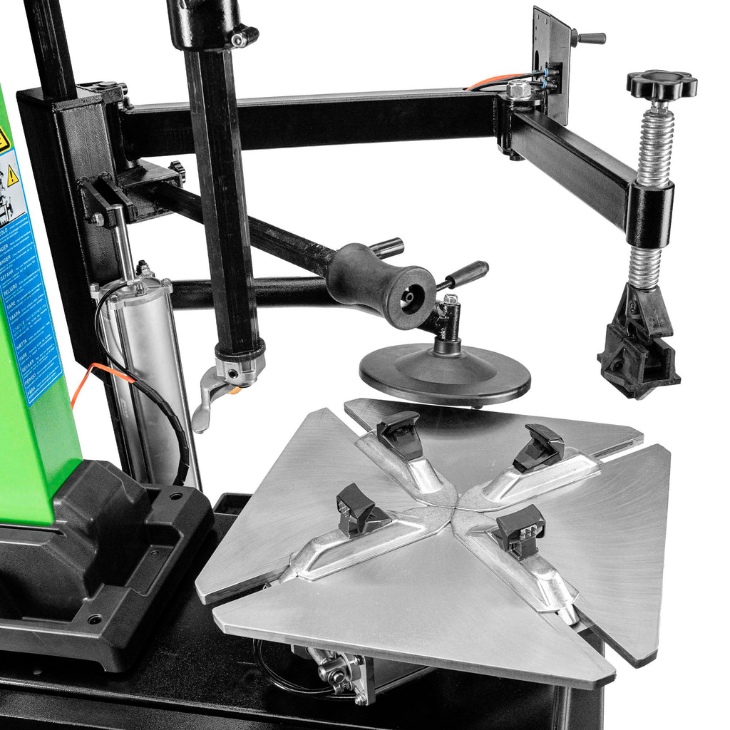 Braccio ausiliario meccanico con rotazione di 360°: facilita il montaggio e lo smontaggio di pneumatici a profilo ribassato, run‑flat e con fianchi rigidi, riducendo lo sforzo e il rischio di danni. Ideale per pneumatici difficili. Migliora l’efficienza operativa.