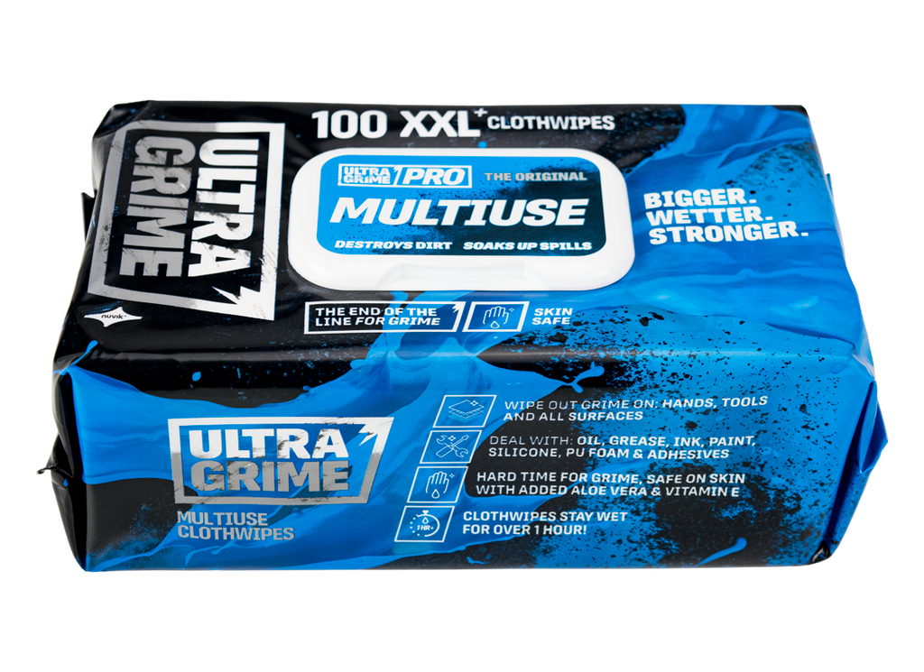 Per qualunque cosa richieda il lavoro, le salviette UltraGrime® Pro Multiuse saranno lì per ripulire il disordine. Questa formula speciale è progettata per gestire qualsiasi tipo di problema, indipendentemente dal tuo tipo di lavoro. Se hai bisogno di pulire olio, grasso, inchiostro, vernice, siliconi o schiuma PU non polimerizzata, prendi le salviette multiuso UltraGrime® Pro per gestirlo.