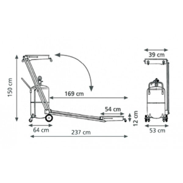 Aspiratore-recuperatore pneumatico per olio esausto a pantografo 90 l con precamera