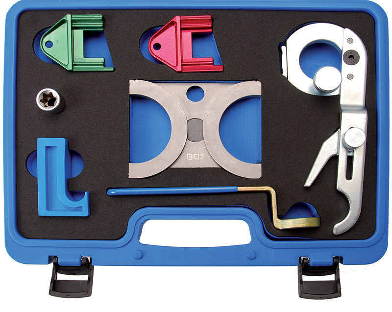 • kit di serraggio per motori Ecotec V6 Opel/ Vauxhall con tecnologia multivalvola • comprende tutti gli utensili necessari per serraggio / bloccaggio di albero motore e a camme • per i seguenti modelli Opel: - Calibra 2.5 V6 (Bj. 93-98) - Cavalier 2.5/2.6 V6 (Bj.93-95) - Omega B 2.5/2.6 V6 (Bj.94-03) - Omega B 3.0/3.2 V6 (Bj.94-03) - Signum 3.2 V6 (Bj.03-05) - Sinatra 3.0 V6 (Bj.96-99) - Vectra A/B/C 2.5/2.6/3.2 V6 (Bj.93-05) • contenuto: - dispositivo di bloccaggio albero motore - regolatore per albero a camme - dispositivo di bloccaggio per cinghia di - trasmissione - bloccaggio dell'albero a camme sinistro - bloccaggio dell'albero a camme destro • peso 2,8 kg |