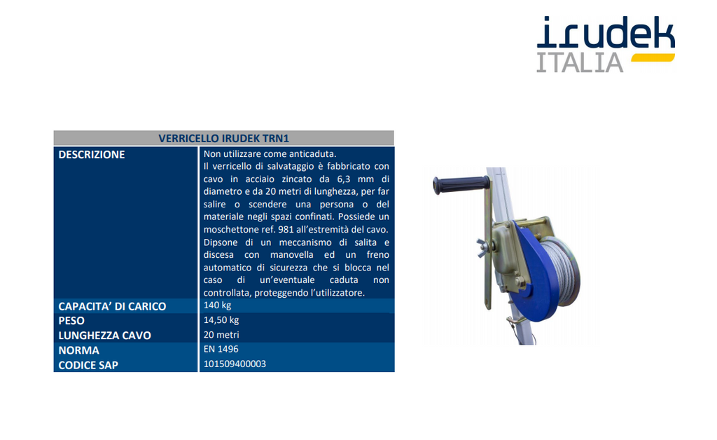 Verricello per treppiedi recupero IRUDEK SEKURALT TRN1
