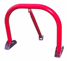 tubo diametro mm.40 verniciato con polvere epossidica, piastre di fissaggio in acciaio zincato provviste di fori per lucchetto, barra centrale, larghezza cm.55 - altezza cm.44 - peso kg.2,9