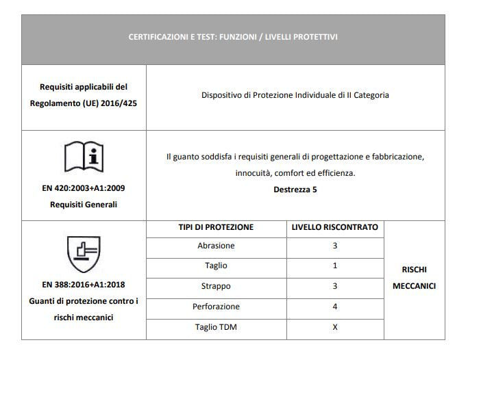 Destinazione d’uso: Questi guanti sono adatti per le seguenti attività (nei limiti dei livelli protettivi marcati): lavori di manutenzione, trasporti, lavori con attrezzi, carpenteria, manipolazione di profilati metallici, falegnameria, movimentazione delle merci, edilizia; conduzioni di muletti o similari.