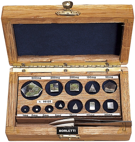 Confezione in scatola di legno composta da n. 12 pezzi in classe F2. Secondo le norme OIML.