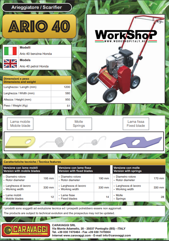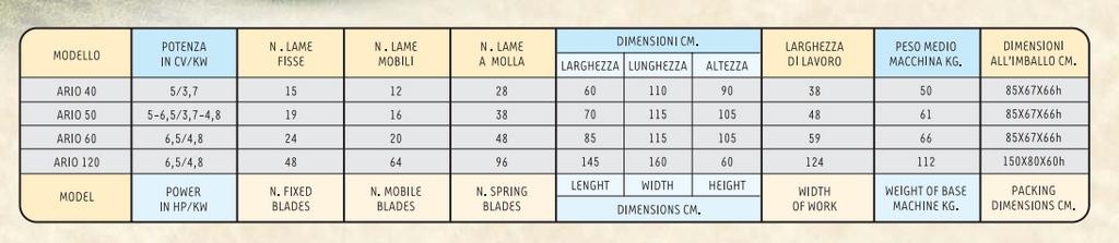 L’arieggatore ARIO, è disponibile nelle versioni 40 / 50 / 60 / 120, costituendo una vasta gamma adatta alle varie esigenze di utilizzo, equipaggiate con motore a scoppio.