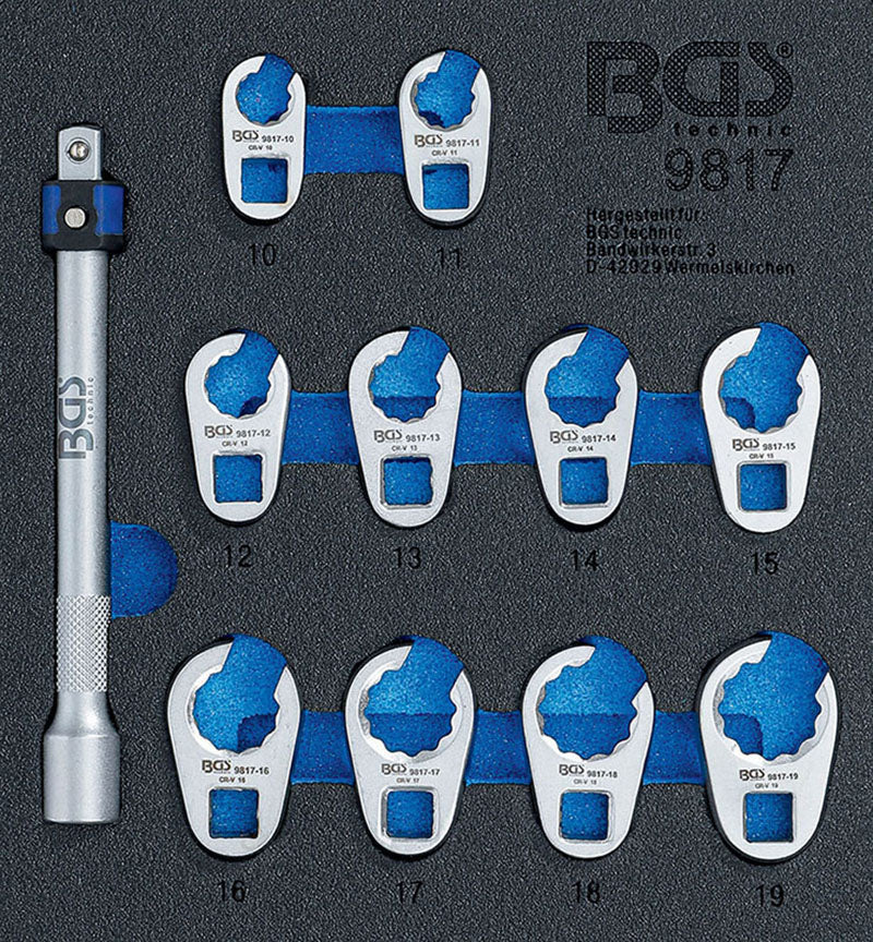 MODULO PER CARRELLO: 11 PEZZI, CHIAVI A ZAMPA DI GALLO, ATT. 3/8” BGS9817