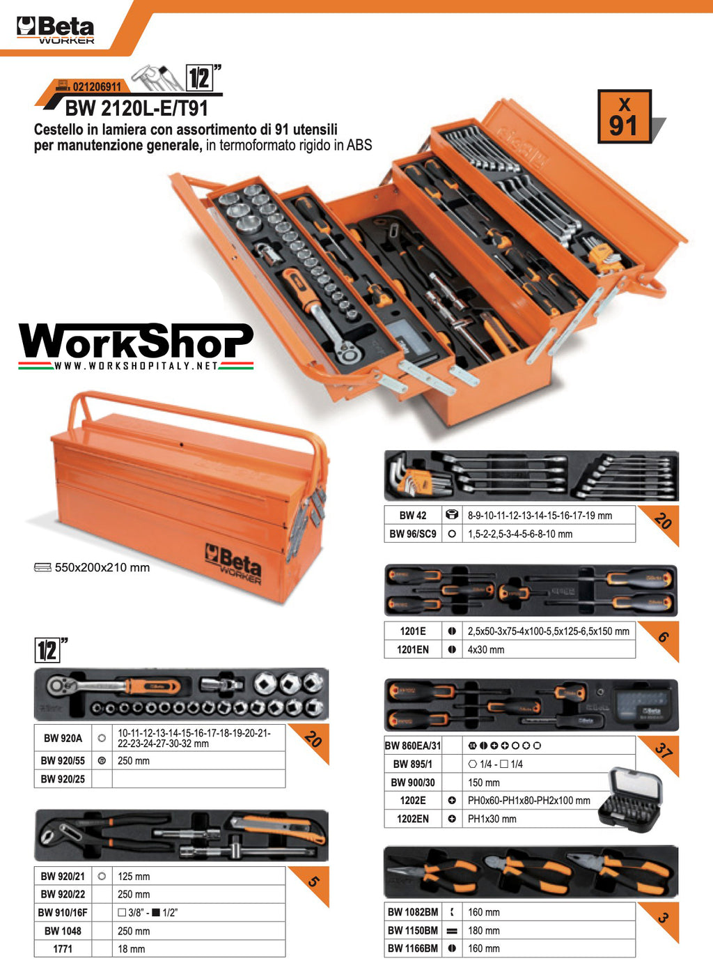 Cestello in lamiera con assortimento di 91 utensili Beta BW 2120L-E/T91