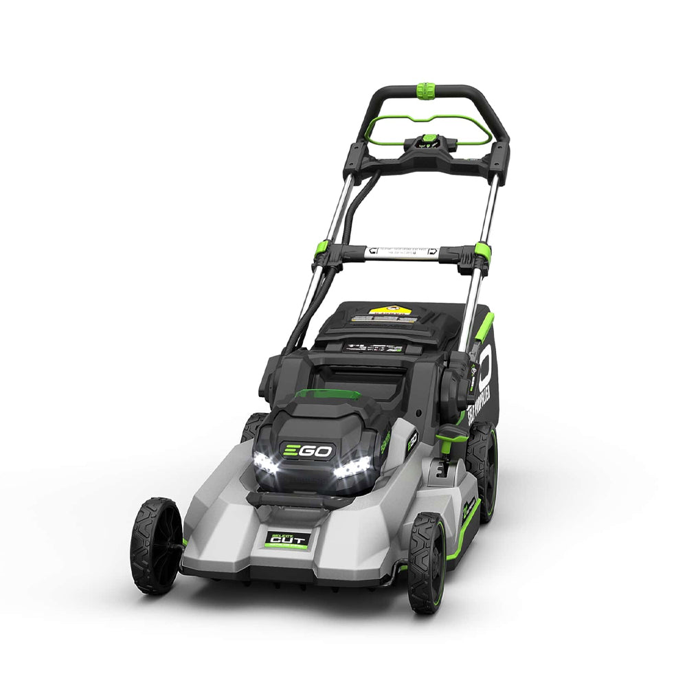 Rasaerba a batteria EGO LM 2135 E-SP con telaio in po lipropilene rinforzato ed ultra leggero. Larghezza di taglio: 52 cm. Trazionato: variatore di velocità 2.2-5 km/h. Automatic variable speed: regola la velocita di taglio per ottimizzare la durata della batteria mantenendo le prestazioni di taglio. Ripiegabile per un facile rimessaggio. Ruote High Wheeler. Ridotto rumore e ridotte vibrazioni. Zero emissioni durante l'utilizzo. Fornito con batteria 7.5 Ah e caricabatterie rapido. Interruttore a leva ergonomica passante con cruscotto; interruttore di sicurezza a pulsante. Luci anteriori a led.
