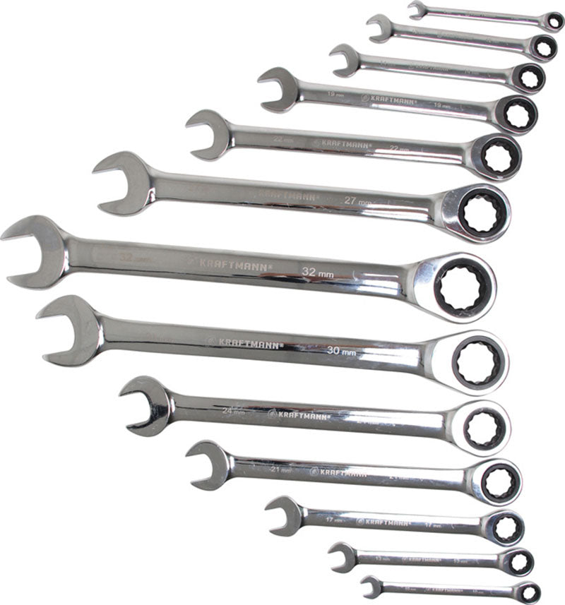 SET 13 PEZZI, CHIAVI COMBINATE A CRICCHETTO, 8-32 MM BGS30006