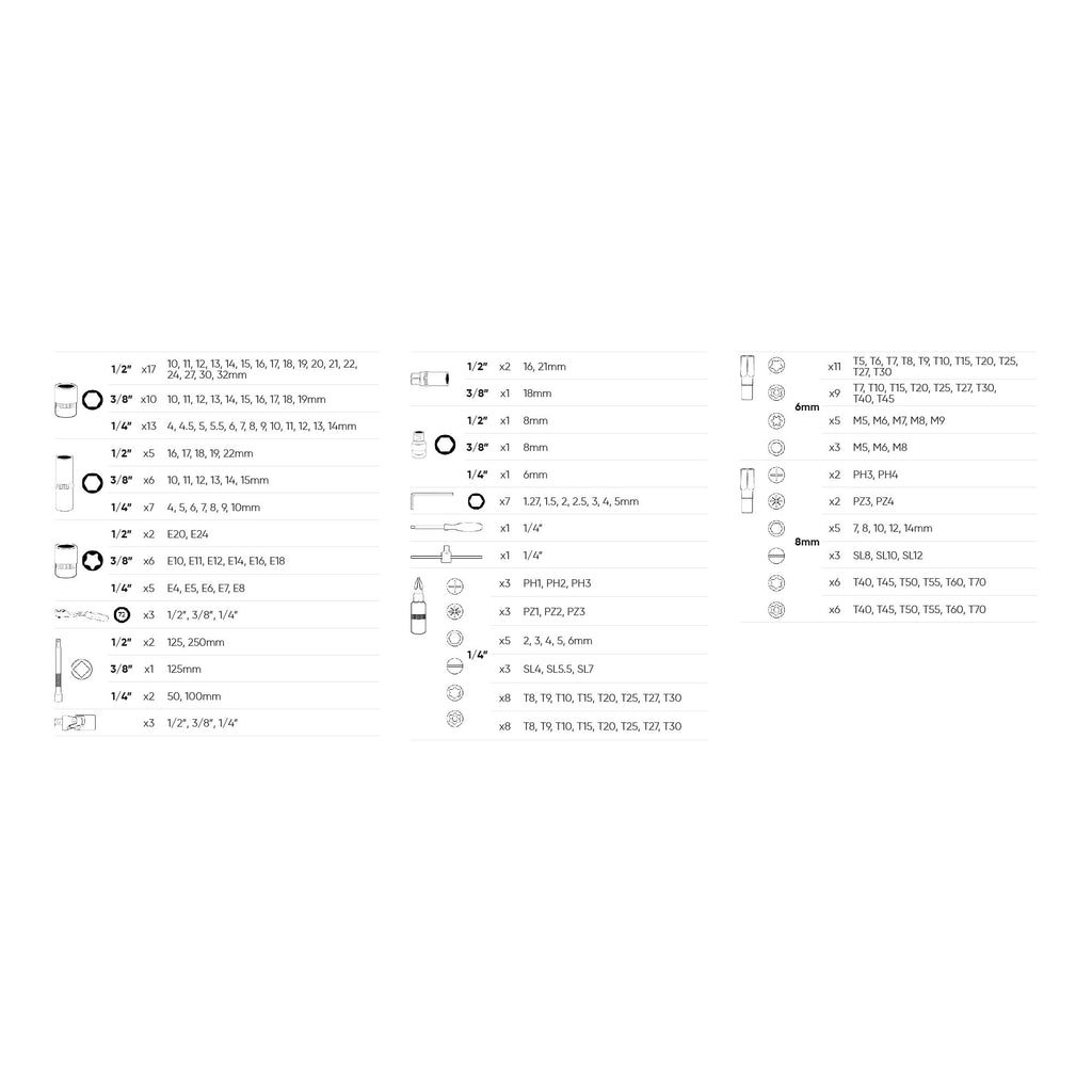 VALIGETTA DI UTENSILI DA 179 PEZZI CON BUSSOLE ESAGONALI SATINATE JBM 54035