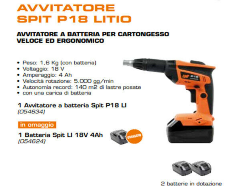 Avvitatore cartongesso Litio Spit P18 3 batterie 18v 4Ah + Caricabatterie