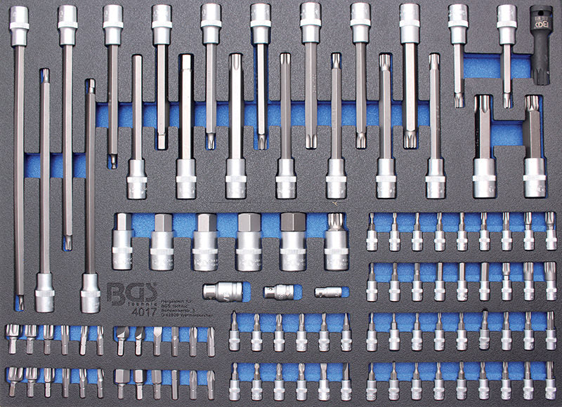MODULO PER CARRELLO: INSERTI E CHIAVI A BUSSOLA, 101 PEZZI BGS4017