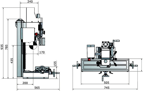· Tavola a croce massiccia regolabile tramite 3 volantini con superficie lavorata di precisione e scanalature a T, lardoni conici regolabili