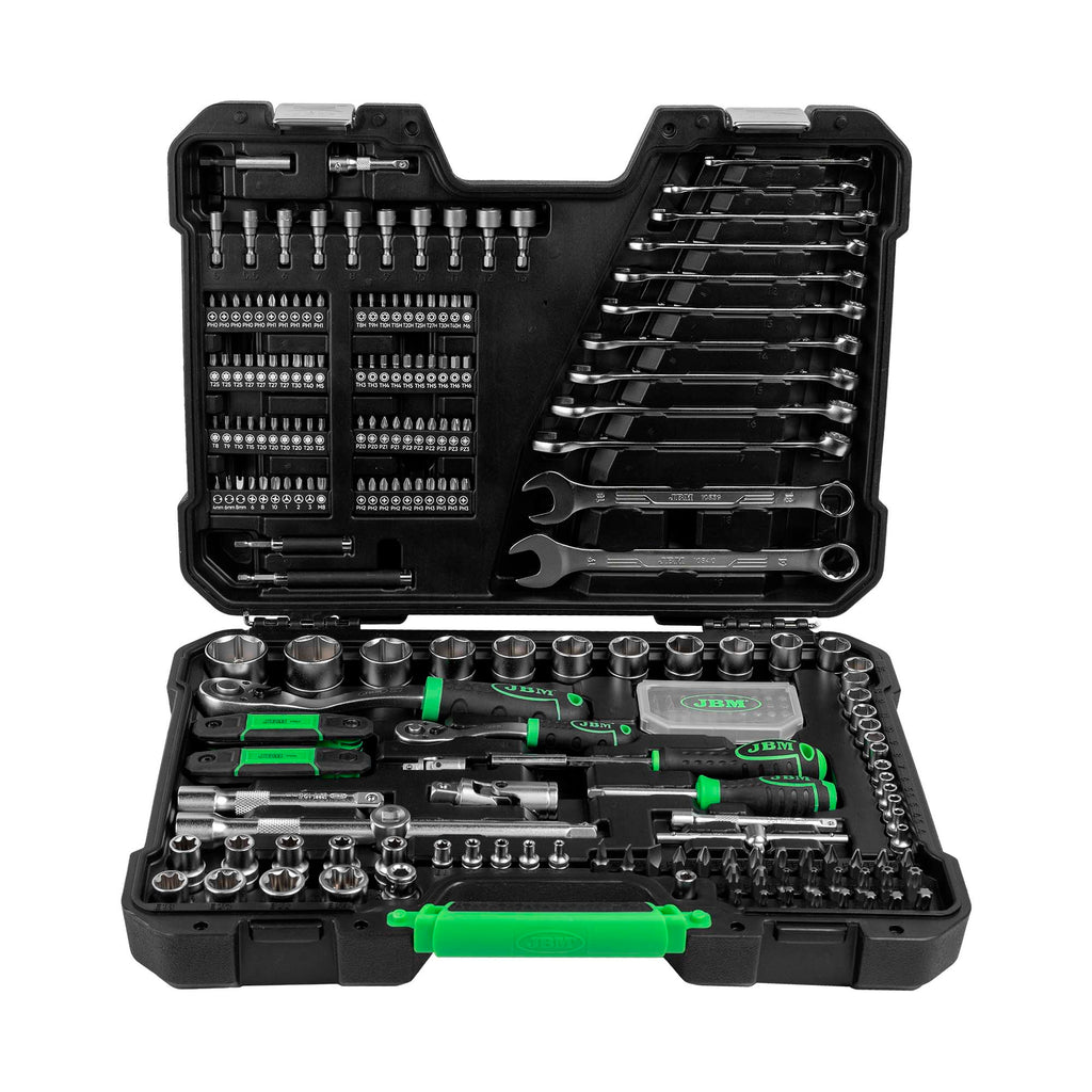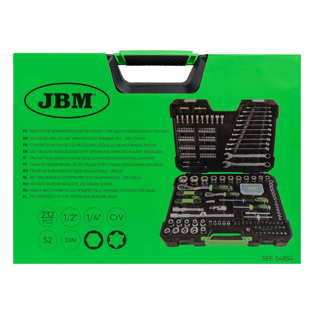 VALIGETTA DI UTENSILI DA 232 PEZZI CON BUSSOLE ESAGONALI SATINATE JBM 54854