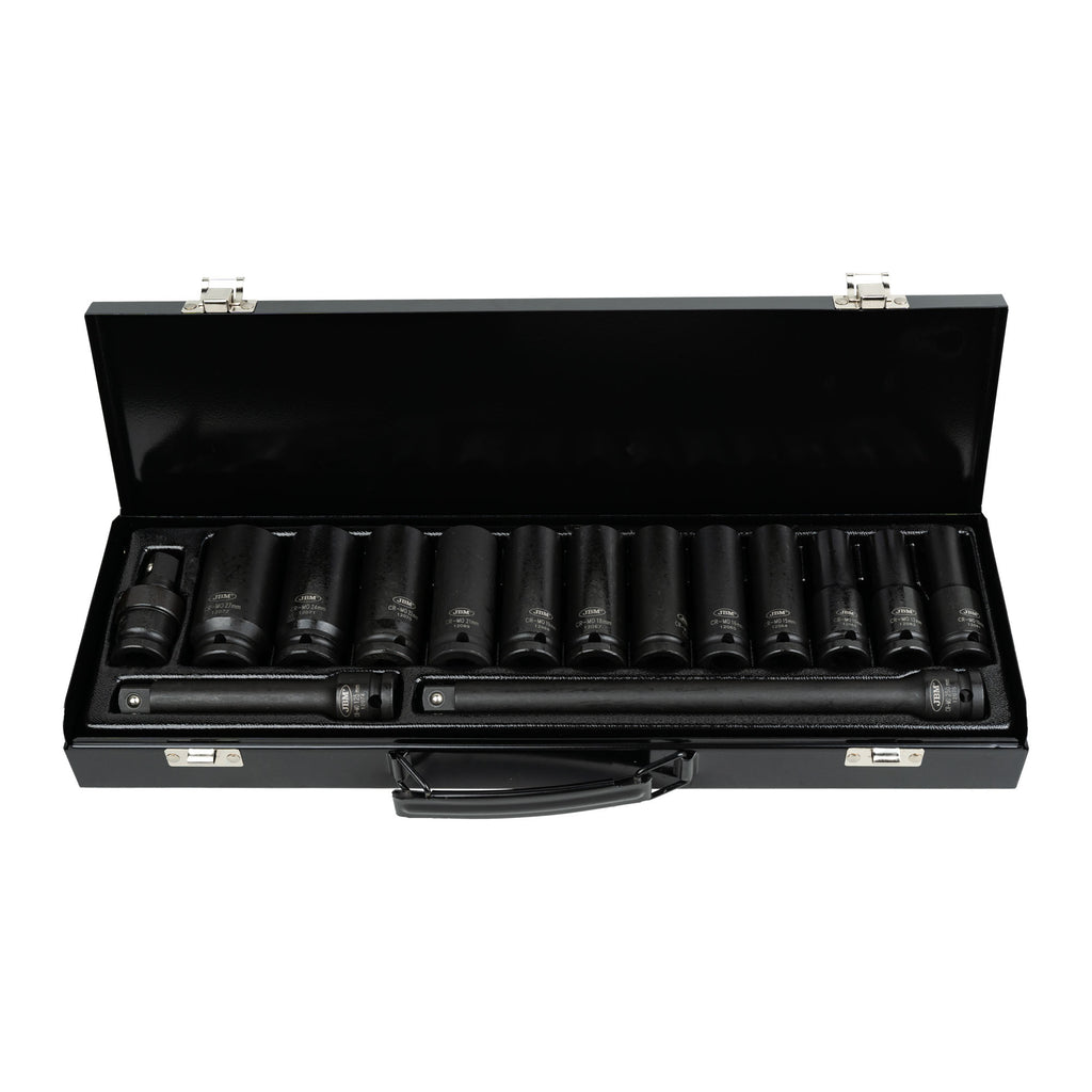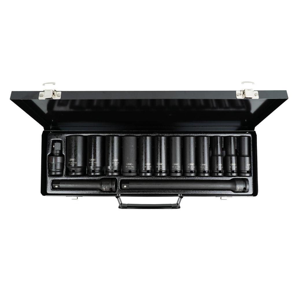 SET DI IMPATTI DA 15 PEZZI CON 12 BUSSOLE ESAGONALI LUNGHE DA 1/2" + ADATTATORI JBM 52346