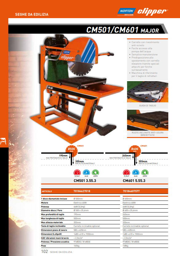 Sega per edilizia Norton Clipper CM5001 CM601 MAJOR