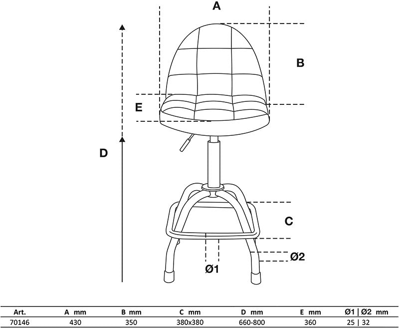 SEDIA GIREVOLE DA OFFICINA, ALTEZZA REGOLABILE, 635 - 787 MM BGS70146