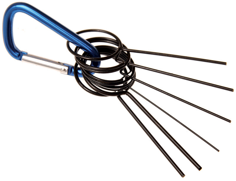 • adatto per il blocco dei tiranti della cinghia • Ø perni: 1.9 ,1.7 ,1.5 ,1.4 ,1.25 ,0.8 mm • lunghezza dei perni: 47 mm • in acciaio • moschettone in alluminio • peso 20 |