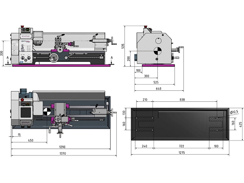 Tornio parallelo Optimum TU 2807 adatto per il fai da te con motore da 850 W 230V, scatola ad ingranaggi di avanzamento e regolazione continua del numero di giri. Distanza tra le punte di 700 mm.