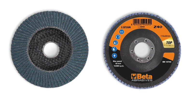 Dischi lamellari con tela abrasiva allo zirconio, supporto in fibra di vetro e lamella singola Beta 11216A