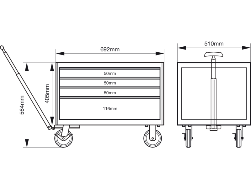 - E87 Cassettiera per officina su rotelle con 4 cassetti