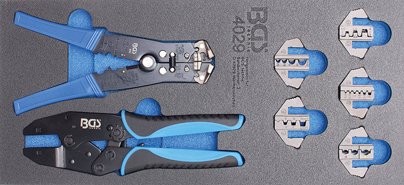 MODULO PER CARRELLO: PINZE SPELAFILI E CHIAVE PER CRIMPARE BGS4029