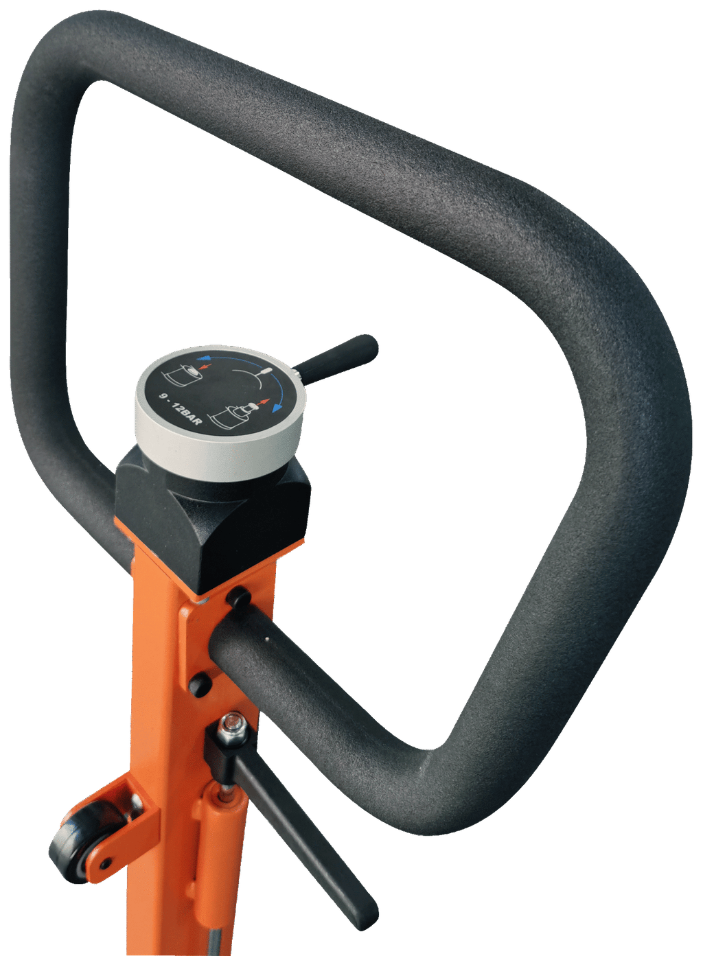 - La ruota di supporto posizionata sulla leva previene gli infortuni e consente una maggiore manovrabilità del sollevatore