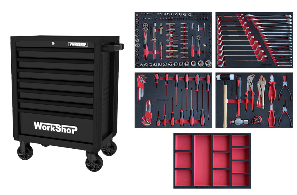 Carrello 7 cassetti Workshopitaly TOP PERFORMANCE + set 172 utensili basic per manutenzioni generiche