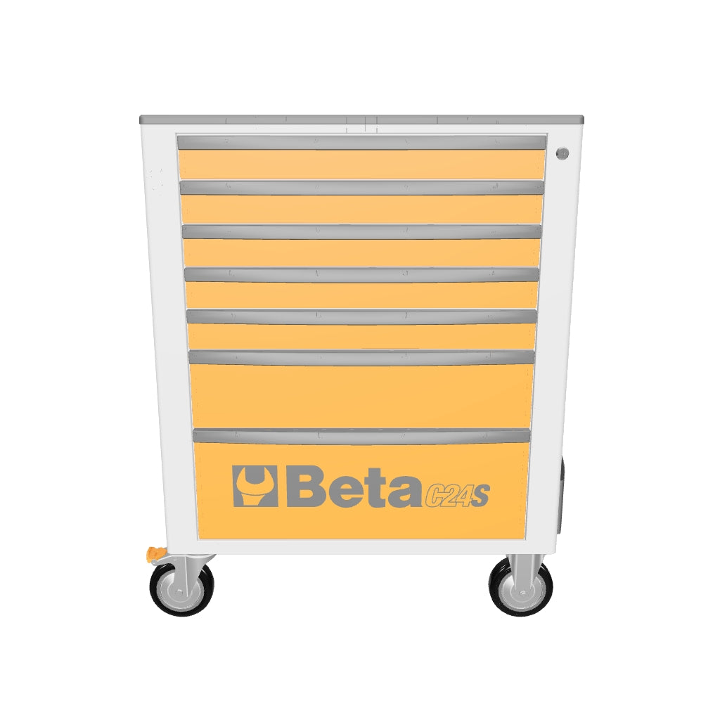 Cassettiera mobile con 7 cassetti, il carrello best seller Beta per rapporto qualità/prezzo, disponibile in 3 varianti di colore, Arancione, Rosso, Grigio.