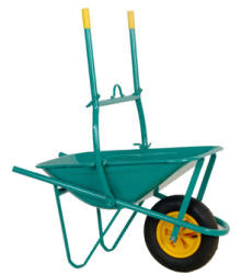 in regola con le norme antinfortunistiche in acciaio con manico piegato, telaio in tubolare, vasca pesante con bordo arricciato dimensioni cm.54x85, capacità lt.75, ruota sezione cm.35x8