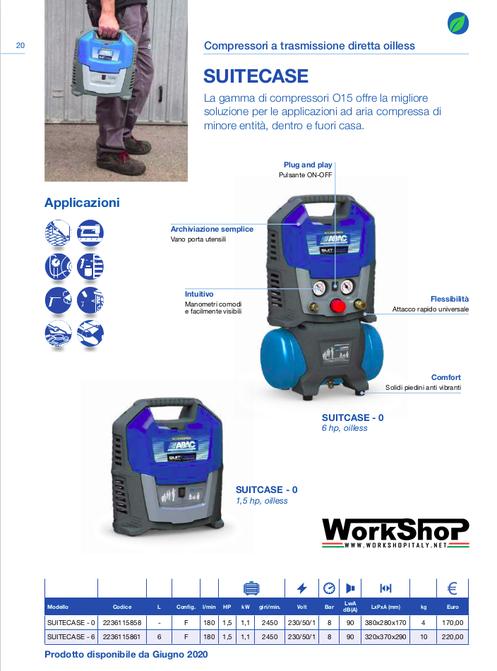 Compressore aria O15 6 litri SUITCASE 6 1,5HP SERBATIO DA 6LT.