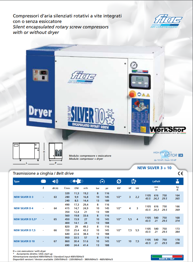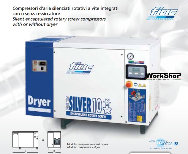 Compressori rotativi a vite Fiac NEW SILVER 3 4 5,5 7,5 10 con essicatore