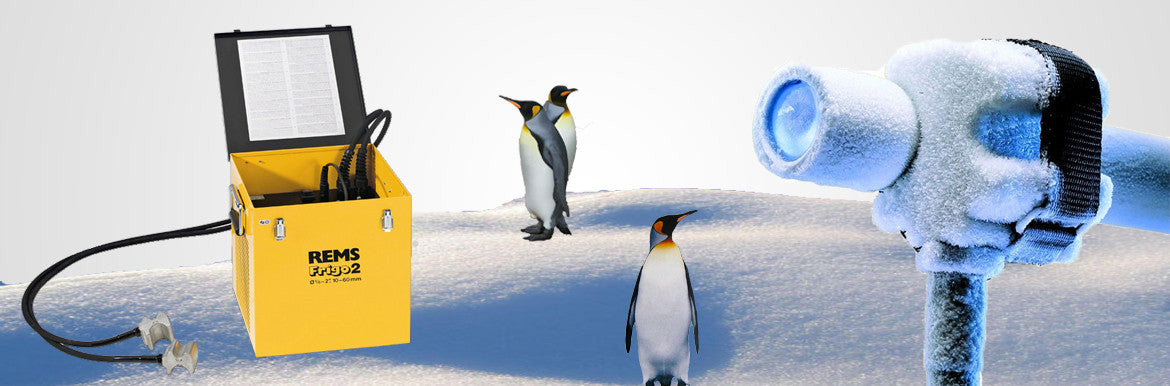 Congelamento semplice e veloce di tubazioni non svuotate. Circuito chiuso del refrigerante. Ecologico. Per manutenzione, riparazione ed ampliamento di sistemi di tubazioni. Refrigerante interno: R-404A. Tubi di acciaio, rame, plastica, composti Ø 1/8–2” Ø 10–60 mm.