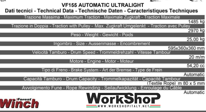 Il VF155 Automatic Ultralight è la sintesi della ricerca e dello sviluppo compiuto da Docma S.r.l. in questi anni. L’innovativo tamburo avvolgi fune completa una macchina unica nel suo genere.