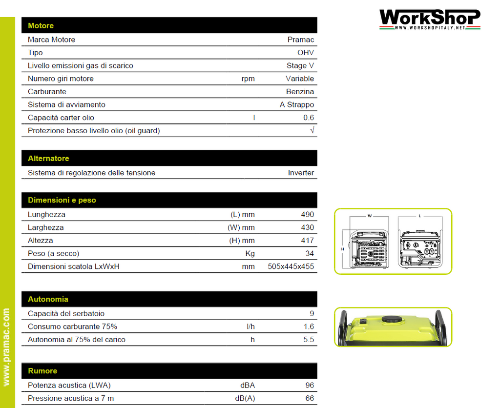Generatore di corrente Pramac INVERTER Silenziato P3500I/O