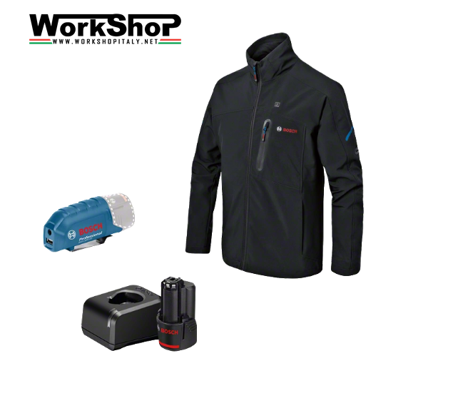 Giacca riscaldante Bosch GHJ 12+18V XA + batteria 12v 2Ah + caricabatteria