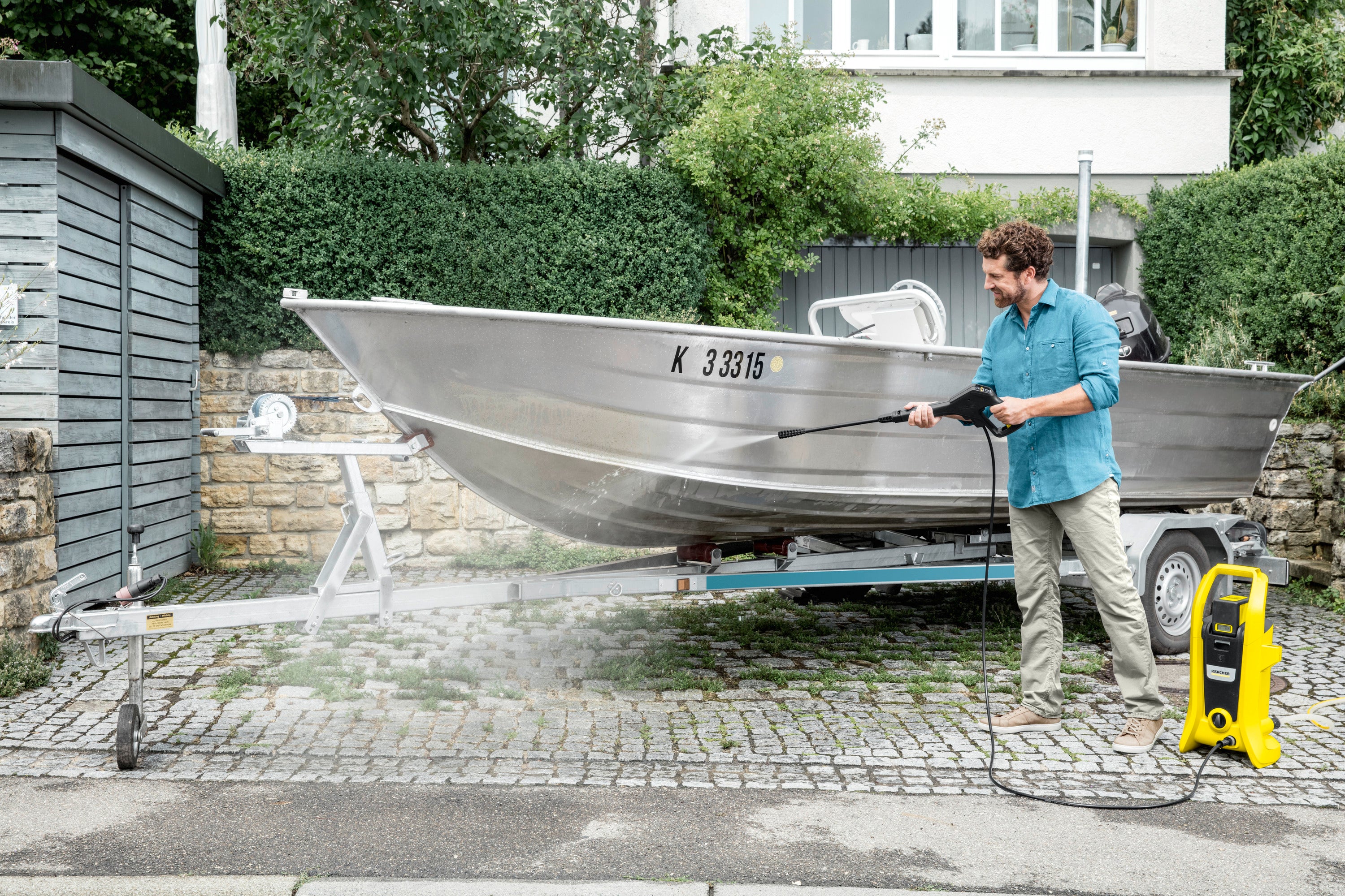 La K 2 Battery è totalmente indipendente dalla rete elettrica: la batteria agli ioni di litio 36 V/5.2 Ah della serie 36V di Kärcher è durevole e garantisce l'alimentazione adatta a lavare in alta pressione auto, moto, bici e barche e anche a portare a termine parecchi lavori di pulizia all'esterno. La batteria, che dura fino a 17 minuti, e il caricabatteria sono inclusi in dotazione. Si può anche collegare l'idropulitrice al tubo di aspirazione eco!ogic di modo che la K 2 Battery possa essere alimentata da fonti alternative e non dalla rete idrica. La dotazione inoltre comprende: due lance alta pressione una monogetto e una con ugello rotante, pistola con display analogico dove si visualizza la modalità di lavaggio in essere, un tubicino di aspirazione detergente e il filtro acqua integrato che protegge la pompa dalle particelle di sporco.