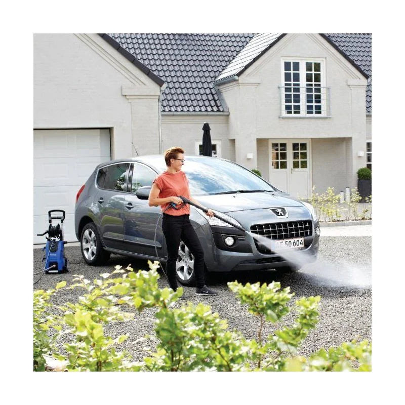 Idropulitrice dotata di pompa in alluminio per un'elevata durata e motore a induzione da 2100 W per raggiungere una portata massima di 500 l/h e una pressione di 155 bar. Viene fornita con un avvolgitubo per riporre in ordine il tubo quando non in uso. Un'altra caratteristica pratica è la possibilità di utilizzare gli appositi vani per riporre ugelli, lancia e impugnatura direttamente sull'idropulitrice.