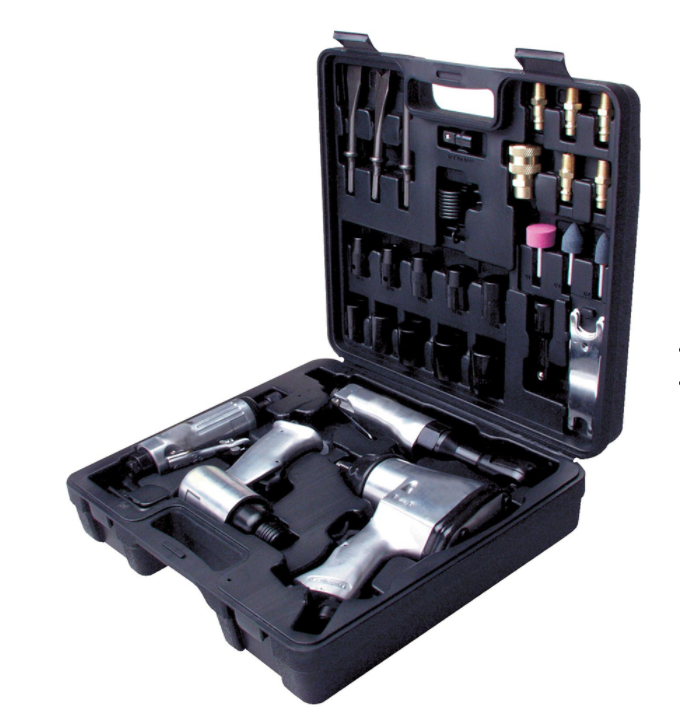 Il kit contiene tutti gli accessori per eseguire lavori hobbistici e semiprofessionali come montare/smontare pneumatici, molare, delolire e avvitare.