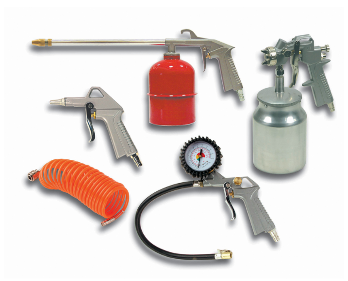 Il kit contiene tutti gli accessori per eseguire lavori hobbistici e semiprofessionali come verniciare, soffiare, gonfiare, nebulizzare liquidi/lavare.