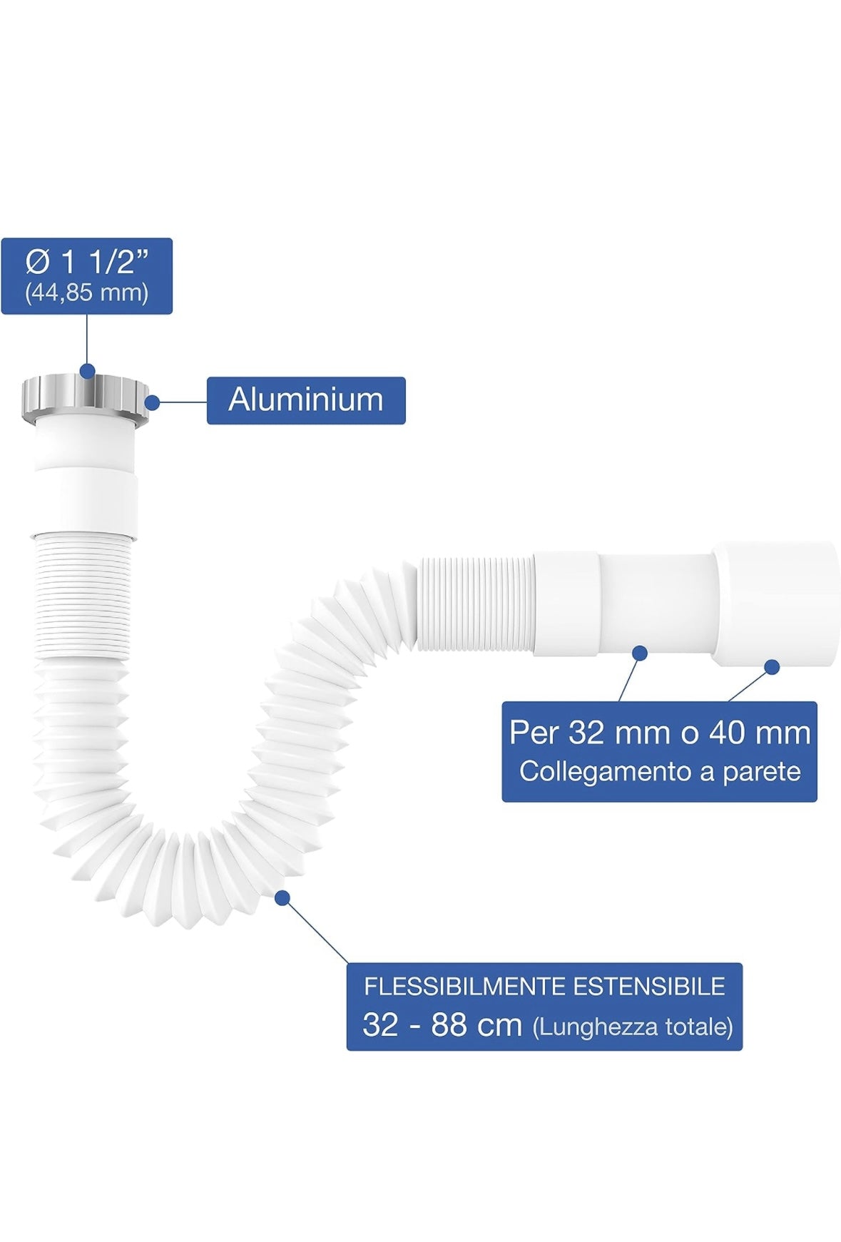 Tubo allungabile da 32 a 88cm con diametro collegamento a muro da 32 / 44 mm