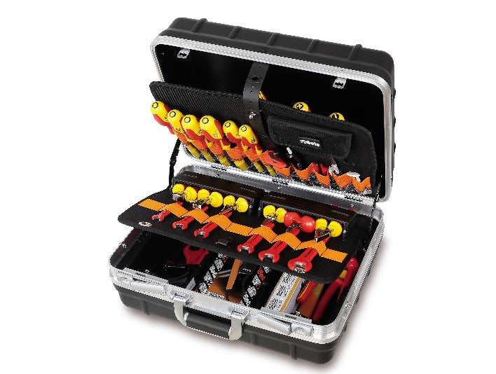Valigia trolley portautensili in polipropilene ad alto spessore, profilato in alluminio Beta 2036/TV + allestimento 98 utensili per elettronica.
